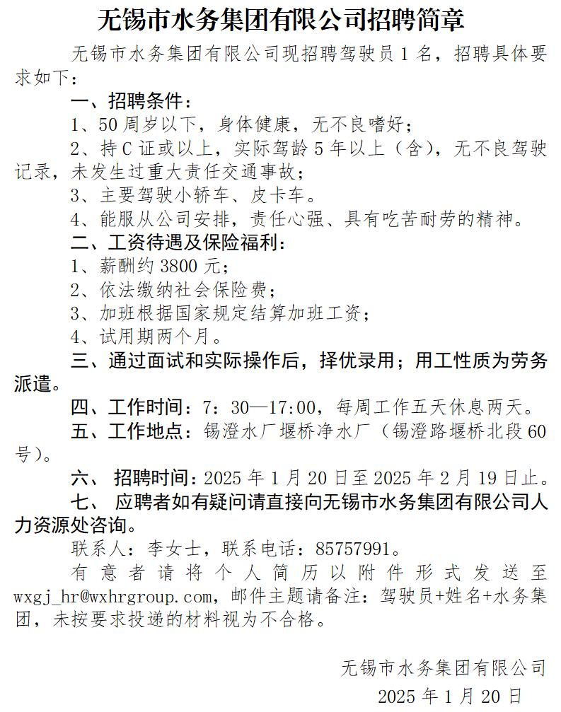 【招聘信息】无锡市水务集团有限公司招聘简章